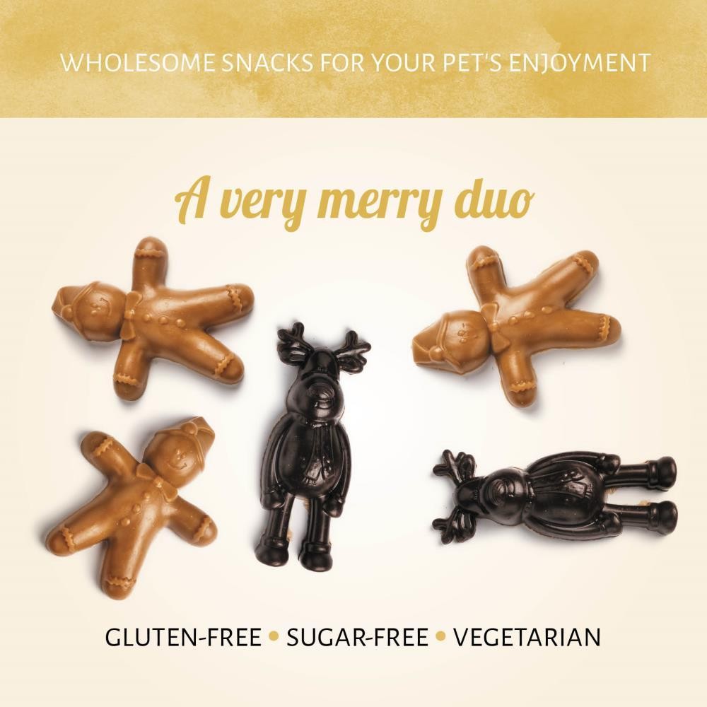 Plongez votre chien dans l’ambiance magique de Noël avec 🦌 Rudolph le renne & 🍪 Gingy le bonhomme en pain d’épices. Aussi jolies que savoureuses, elles sont idéales pour offrir un petit moment de plaisir festif à votre compagnon.